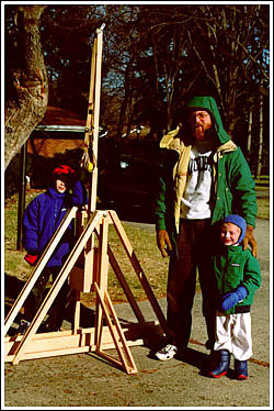 The entire frame of the treb is built from one-by-twos of Douglas fir, which someone told me has great shock